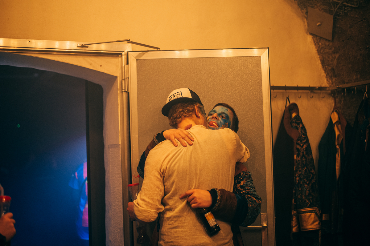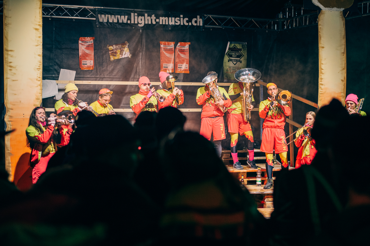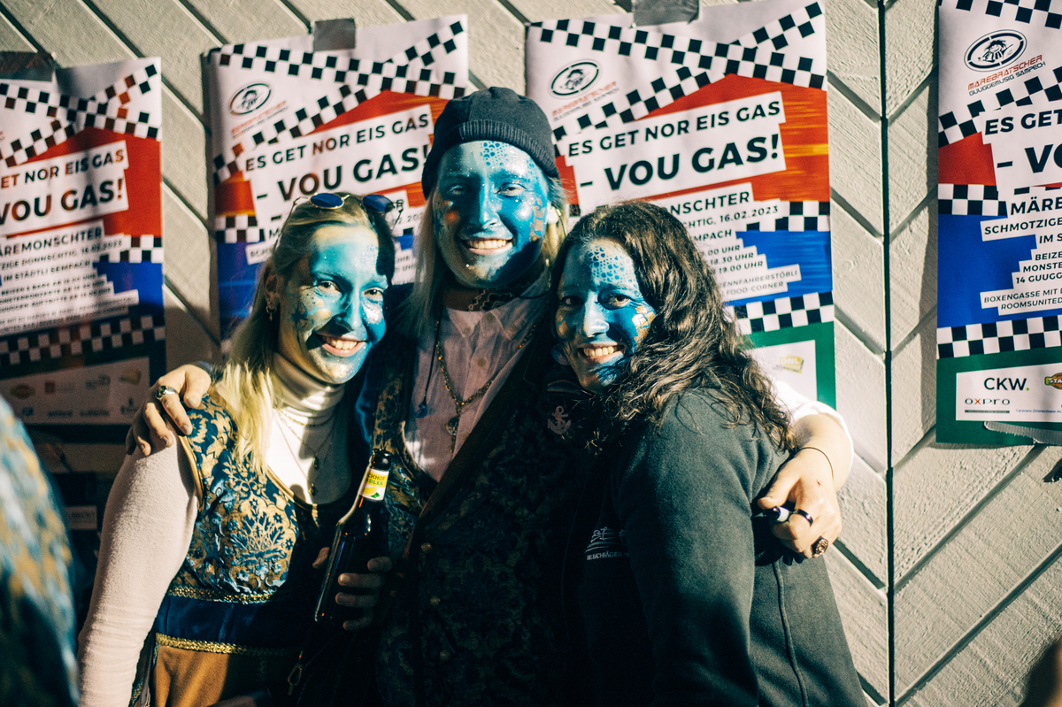 Ausgelassene Stimmung nach dem Auftritt in Sempach. Die einen sind erleichtert, andere rappen noch ein Versli oder freuen sich schon auf das nahe Morgenessen. Fotos: Diverse