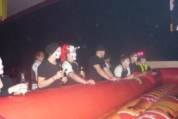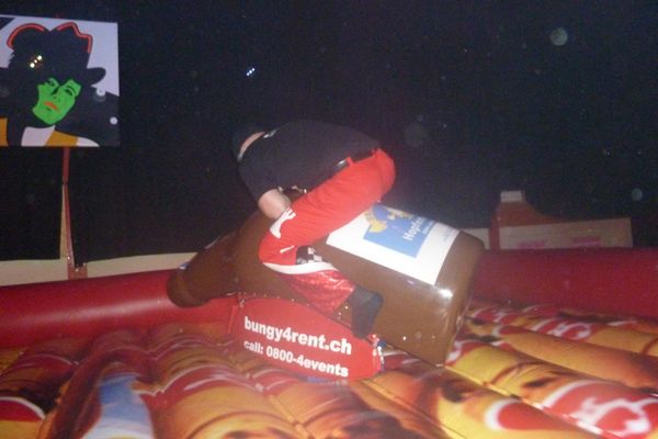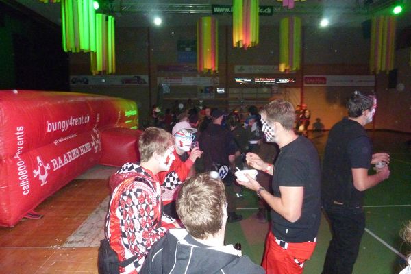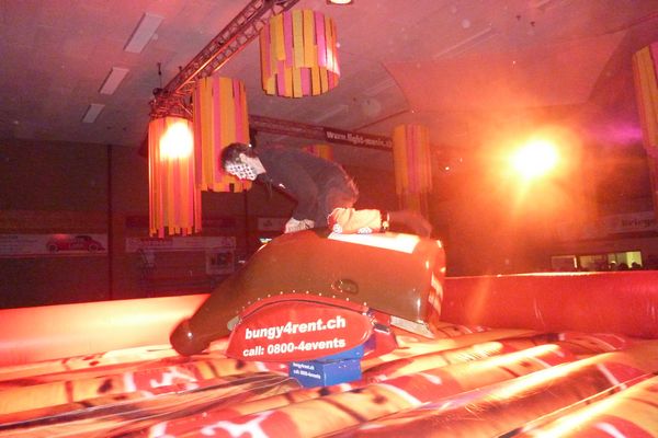 In der MZH Ruswil angekommen, war es für uns kein Problem sich zu Recht zu finden und bald ging es dann auch zur Guggenverpflegung. Bereits um 19.30 Uhr konnten die ersten Guggenklänge gehört werden. Uns blieb aber noch genügend Zeit für einen Drink und interessante Gespräche. Für die „Mutigen“ in unseren Reihen war ein Versuch beim Bottleriding ein Muss.