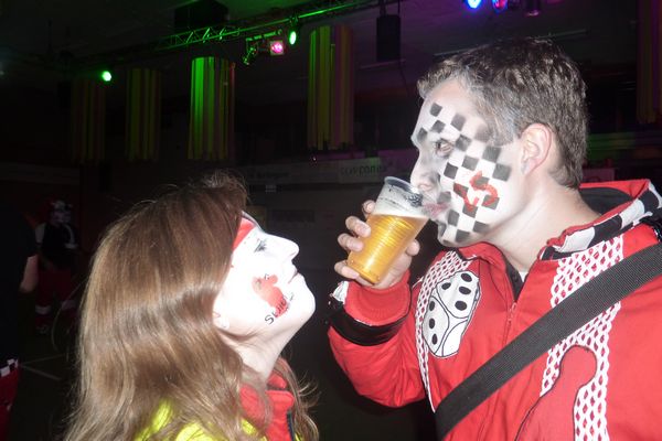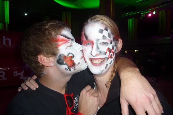 Es ist wieder soweit. Wir trafen uns um 16.30 Uhr zum ersten Mal zum Schminken im UG. Es fühlte sich schon ein bisschen speziell an, da uns bereits im November Farbe ins Gesicht gesprüht wurde. Heute konnten wir das Festgelände zu Fuss bewältigen. Die Vamukigösler luden zur Jubiläumsparty ein.