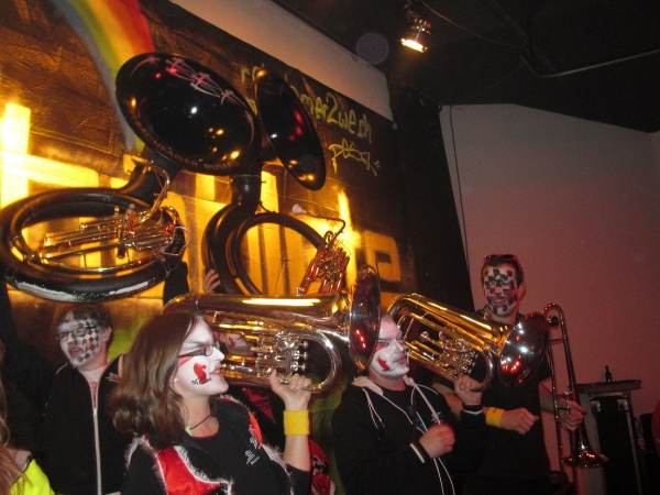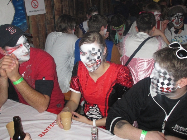 An der Chöblete ist es so, dass die Auftrittszeit in einem Trinkspiel "ersaufen" wird. Wir haben zum Glück mit Baschi eine erfahrene Person dafür. Er hat es auch dieses Jahr mit Bravour für uns gemeistert und so konnten wir um 23.00 Uhr unseren Auftritt spielen.