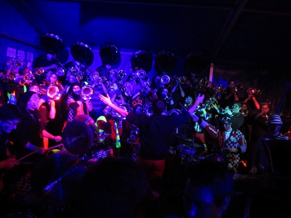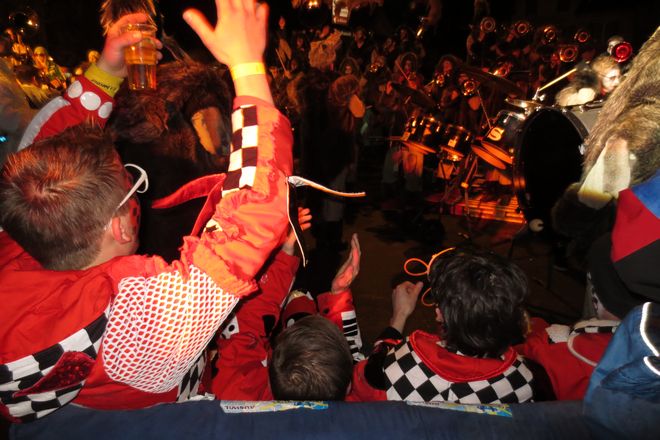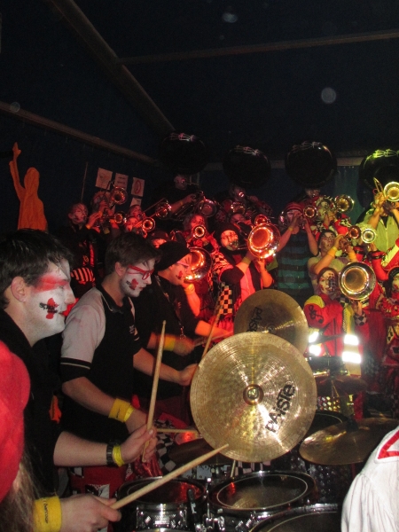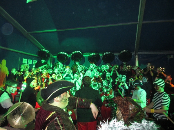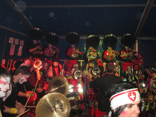 Anschliessend an das Monsterkonzert hatten alle Zeit, sich in den verschiedenen Baren die Zeit zu vertreiben und neue und bestehende Kontakte zu pflegen. In Buttisholz war das sehr einfach, da viele "Fägerfans" anwesend waren. Schon bald wurde es Zeit für unseren Indoor-Auftritt. Die Bielbachfäger waren motiviert dem tollen Publikum eine tolle Guggenshow zu zeigen. Dies ist uns nicht schlecht gelungen.