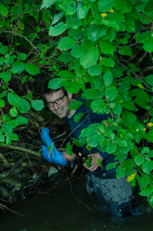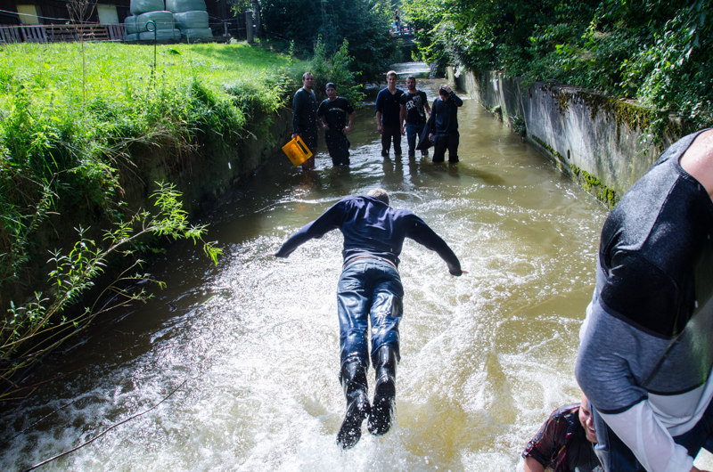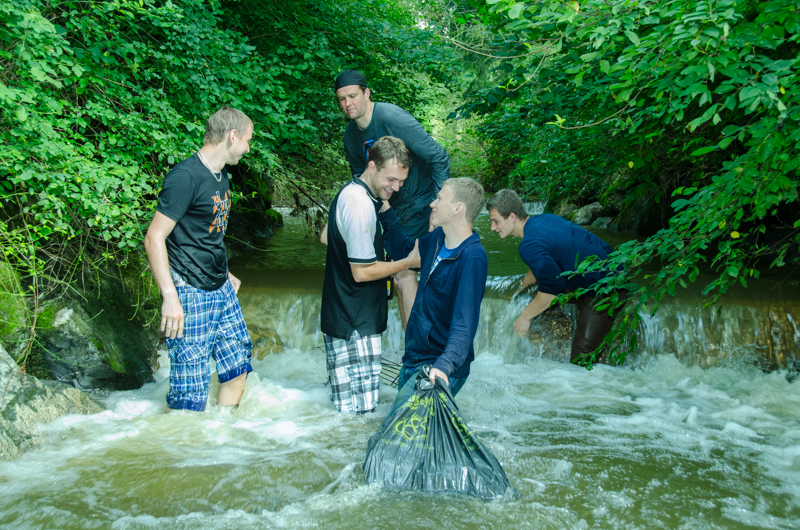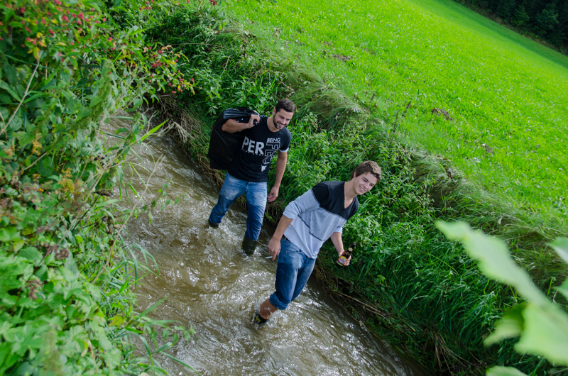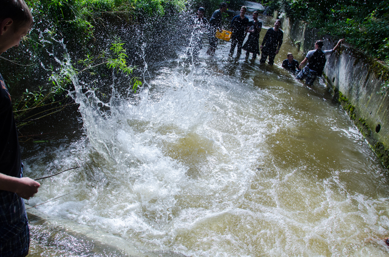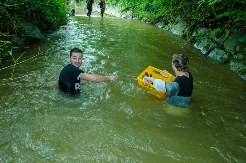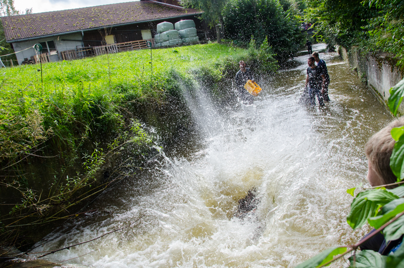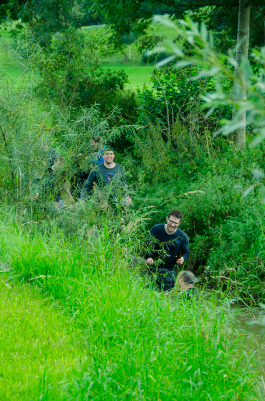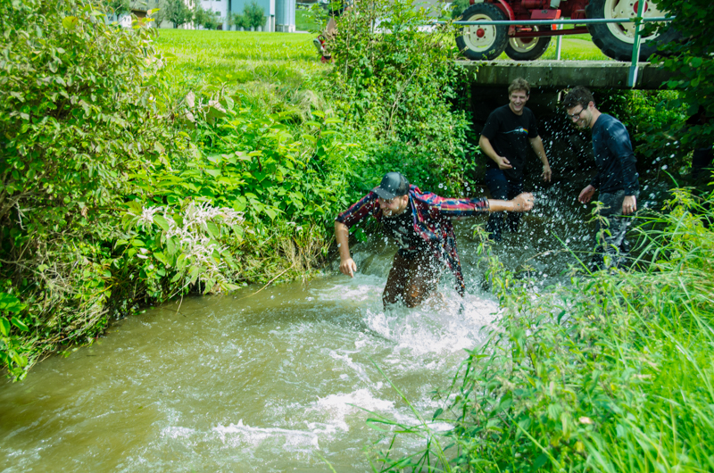 Der Zeitpunkt war gut gewählt, denn just an diesem Nachmittag schickte uns Petrus einige seiner raren Sonnenstrahlen. Dass aufgrund der Regenfälle der Wasserstand etwas höher ist, merkten einige Mitglieder spätestens, als schon beim zweiten Schritt im Bach das Wasser über die Stiefel bis zur Hüfte reichte. Zugegeben, das nasse Wetter der letzten Wochen hat auch seine positive Seite. Durch die grossen Wassermassen wurde der Bach bereits teilweise auf natürlichem Weg gereinigt. Das heisst, dass wir nun wohl den Stab der Bachreinigung von den Bielbachfäger an die Ämmegosler nach Malters weitergeben können.