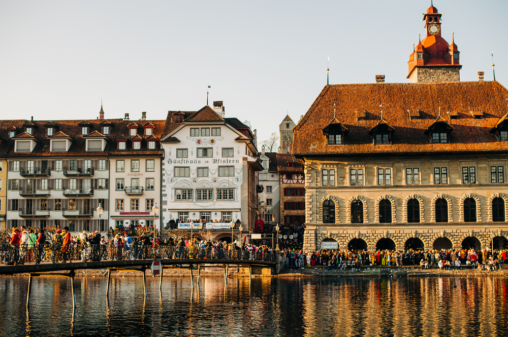 Auftritt mit den Schlochthüülern auf der Rathaustreppe in Luzern. Full-Pull! Foto: Roger Dula