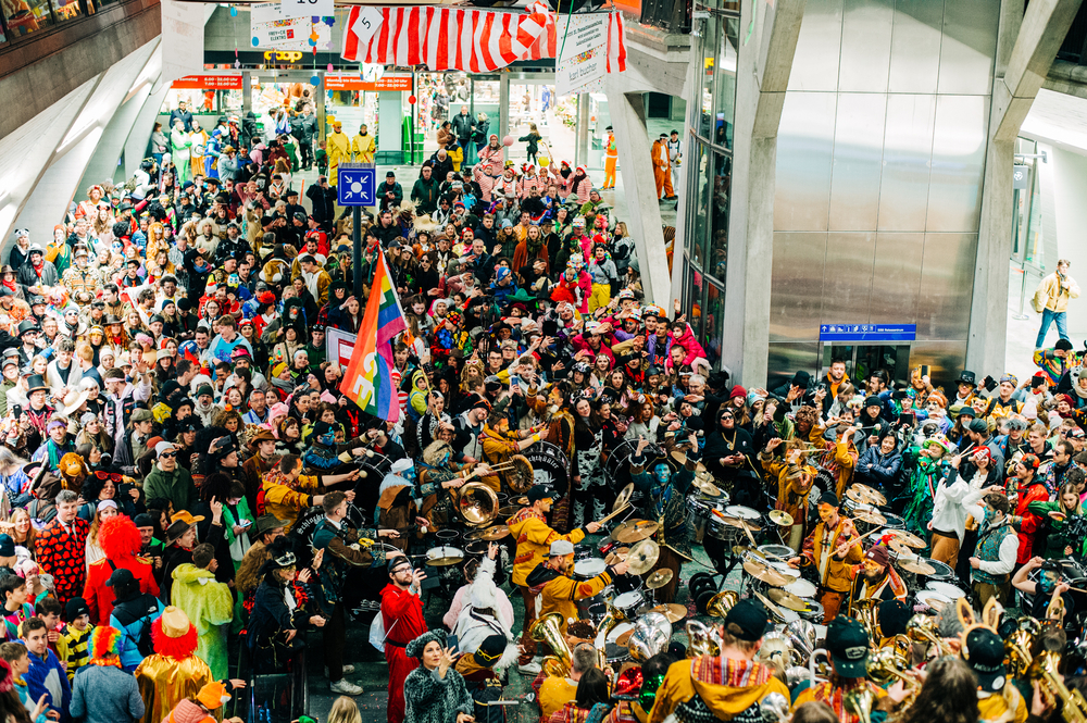 Ab id Stadt! Wie schön es doch war, wieder auf der Rauthaustreppe oder im Bahnhof aufspielen zu dürfen. Zusammen mit den Schlochthüülern konnten wir zwei weitere tollen Auftritte erleben und dieses Projekt fulminant abschliessen. Danach ging es zum vereinsinternen Abendessen im Pacifico.