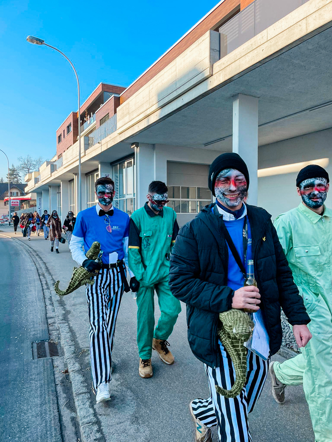 Bereit für die Abfahrt? Die jungen Wilden sind es auf jeden Fall. Wär hed drigluegt?. Foto: Unbekannt